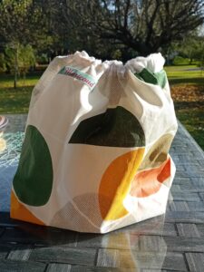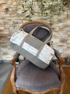 Des sacs pour le marché : une doublure intérieure en toile cirée afin de le nettoyer d’un coup d’éponge après avoir transporté pommes de terre ou poireaux terreux ! avec une poche extérieure et une pochette à rajouter si l’on veut pour mettre le porte monnaie.